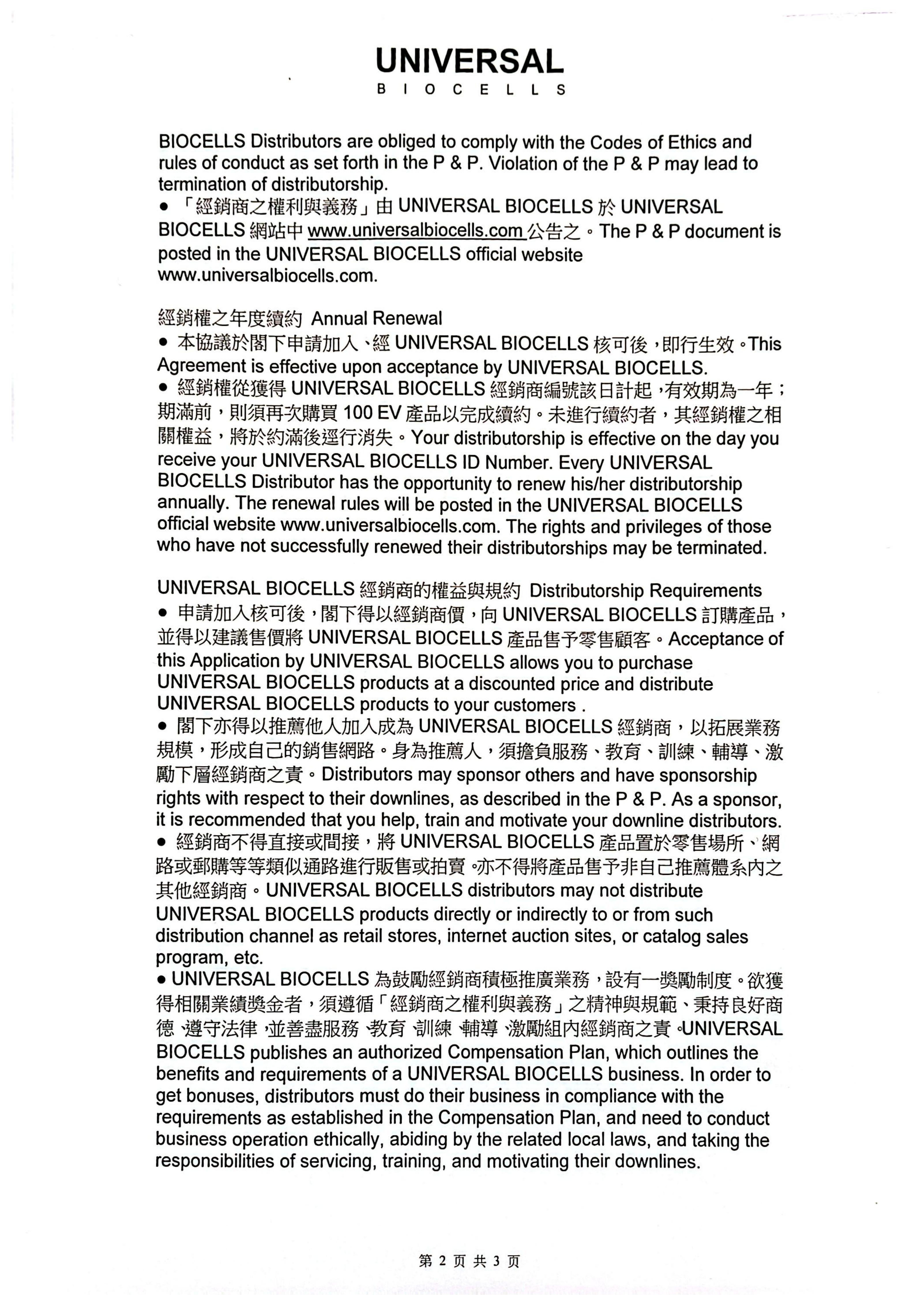 UNIVERSAL Distributor Application and Agreement
